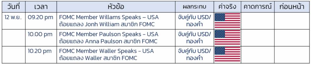 ปฏิทินเศรษฐกิจ วันที 12 พ.ย. 2025