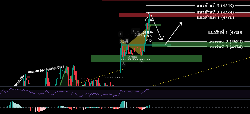 - เปิดสถานะซื้อ (รอสัญญาณซื้อ ) กรอบ 4683-4674 / SL 4660 เพื่อทำกำไร 4690/4700/4710/4720/4730/4740