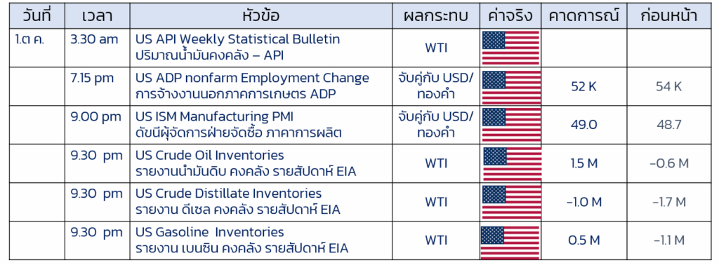 - ติดตามตัวเลขการจ้างงานนอกภาคการเกษตร ที่ประกาศโดย ADP ซึ่งหากตัวเลขออกมาใกล้เคียงกับคาดการณ์ (เดือนก่อนหน้า) สะท้อนตลาดแรงงานยังคงชะลอตัว ปัจจัยกดดันราคาน้ำมัน / แต่หากตัวเลขการจ้างงานกลับมาในระดับ 1XX K สะท้อน การจ้างงานไม่ได้ชะลอตัวอย่าที่คาด สะท้อนเศรษฐกิจสหรัฐอาจกลับมาสดใส ปัจจัยบวกต่อ น้ำมัน