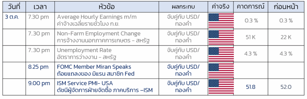 ปฎิทินเศรษฐกิจ 3 ต.ค. 2025