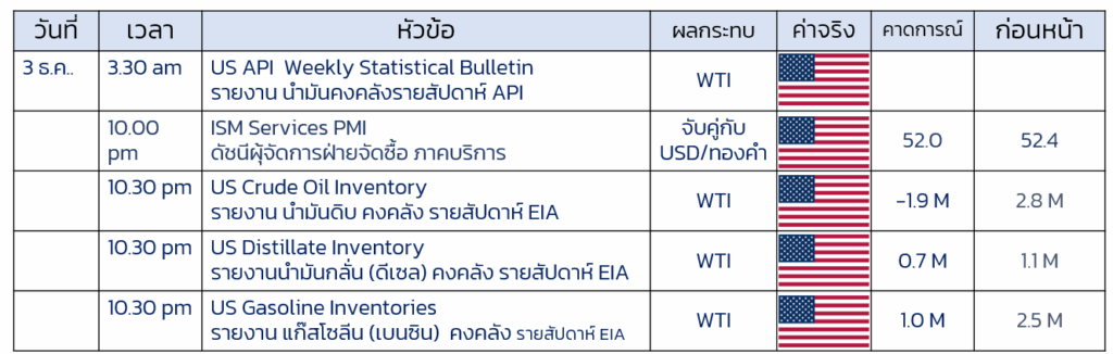 • 3 ธ.ค. American Petroleum Institute (API) รายงานน้ำมันรายสัปดาห์