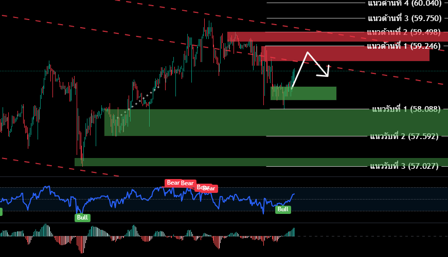 • เปิดสถานะขาย (รอสัญญาณขาย)58.959-59.249 / SL 59.500 เพื่อทำกำไร 58.900/58.840/58.803/58.739/58.629/58.591/58.547