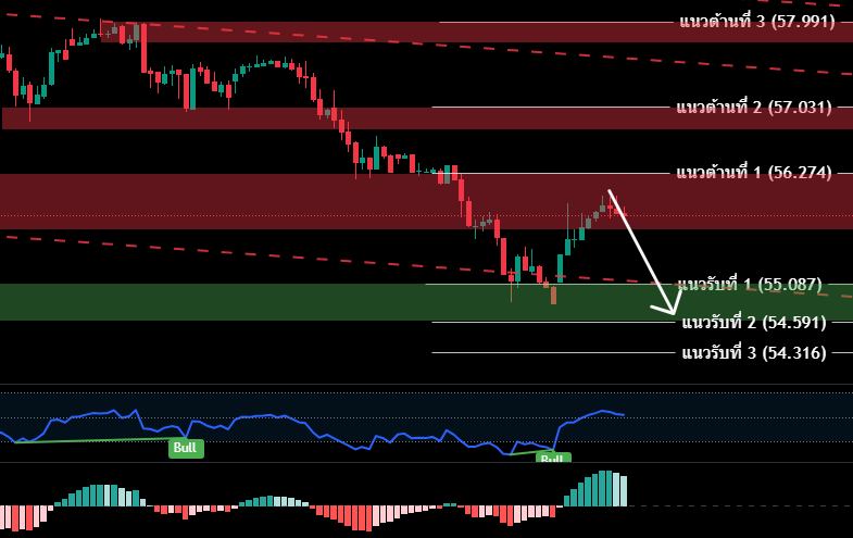 - เปิดสถานะขาย(รอสัญญาณขาย) กรอบ 56.274-55.679/ SL 56.500 เพือทำกำไร ที่ 56.726/56.508/53.373/56.155/56.000