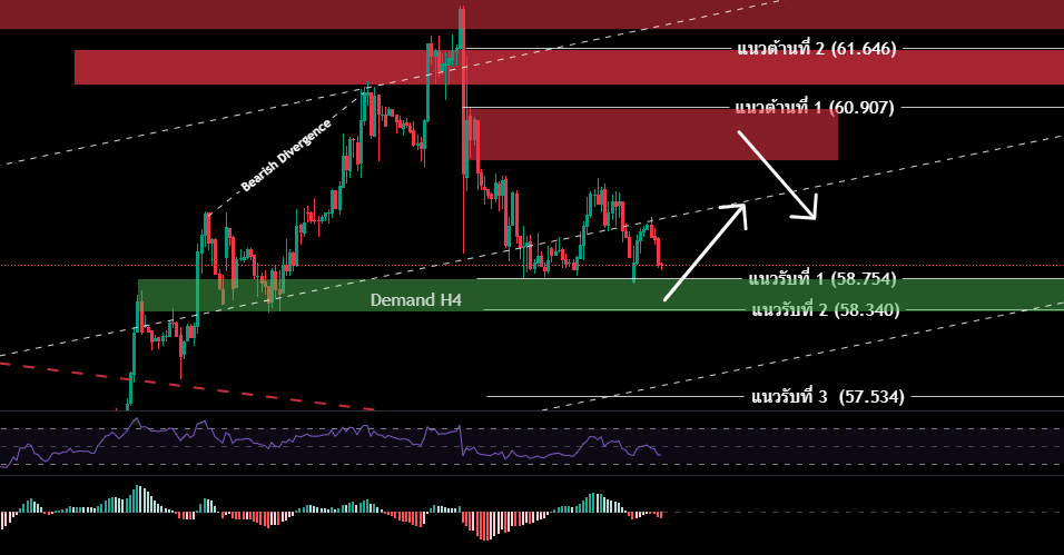 - เปิดสถานะขาย (รอสัญญาณขาย) กรอบ 60.892-60.235 / SL 61.300 เพื่อทำกำไร 59.749/59.532/59.400