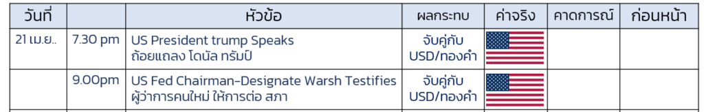 ปฎิทินเศรษฐกิจ 21 เม.ย.2569