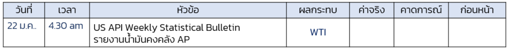 - US API Weekly Statistical Bulletin ของวันที่ 22 ม.ค ….. ปัจจัยกดดันราคาน้มมัน น