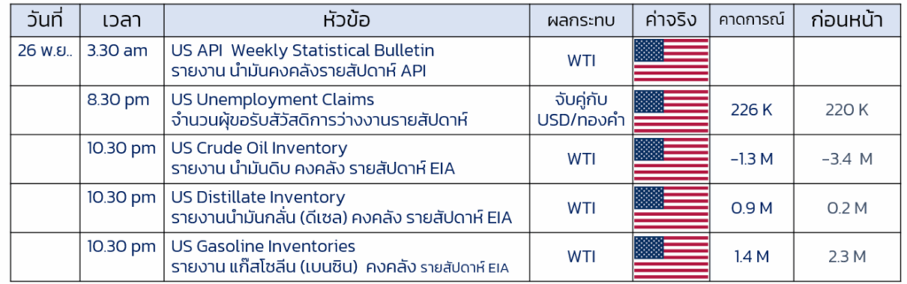 - ติดตามตัวเลขน้ำมันคงคลัง หากผลออกมา เหมือน API ปริมาณสต็อกลดลง จะเป็นปัจจัยบวกต่อ น้ำมัน