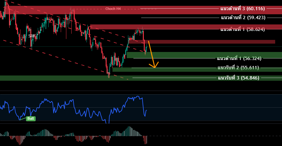 - เปิดสถานะขาย (รอสัญญาณขาย) กรอบ57.449-57.737 / SL 58. 000 เพือทำกำไร ที่ 57.202/56.861/56.650/56.480/56.310/56.067/55.923/55.758