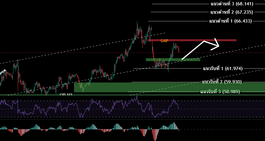H4/H1 โครงสร้าง H4-H1 ยังคงเป็นเทรนด์ขาขึ้น มีการเคลื่อนไหวใน channel uptrend ราคาน้ำมันมีการย่อตัว retracement ในระดับ 78.6 ที่ระดับราคา 60.875 วานนี้ ก่อนจะมีแรงดีดขึ้นจากปัจจัยบวกข่าว