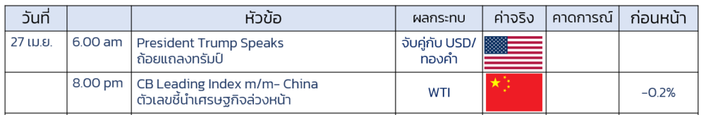 ปฎิทินเศรษฐกิจ 27 เม.ย. 2569