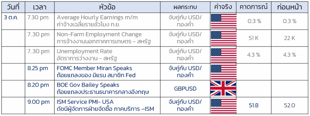 ปฎิทินเศรษฐกิจ 3 ต.ค. 2025