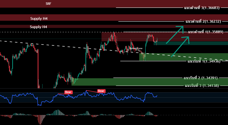 - เปิดสถานะซื้อ(รอสัญญาณซื้อ )ที่กรอบ 1.34955-1.35198 / SL 1.34800 เพื่อทำกำไร 1.35251/1.35288/1.35352/1.34441/ 1.32657/1.35718/1.35819/1.35961/1.35991