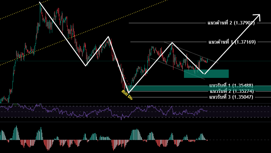• เปิดสถานะซื้อ (รอสัญญาณซื้อ) กรอบ 1.36110-1.35769 / SL 1.35200 เพื่อทำกำไร 1.36243/1.36418/1.36555/1.36748/1.36867/1.37060