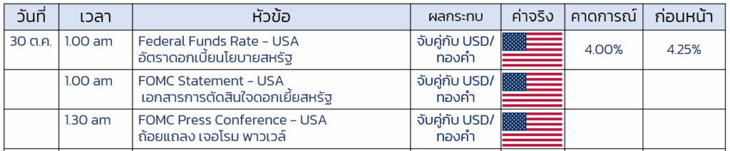 - ติดตามถ้อยแถลง พาวเวล์ ประธาน FOMC หากส่งสัญญาณปรับลดดอกเบี้ยในการประุชมเดือน ธ.ค. และ ม.ค. จะยิ่งเป็นปัจจัยกดดัน USD แต่หากไม่ส่งสัญญาณใดๆ ราคาจะซึ่มซับ ข่าวประกาศอัตราดอกเบี้ยเพียงอย่างเดียว