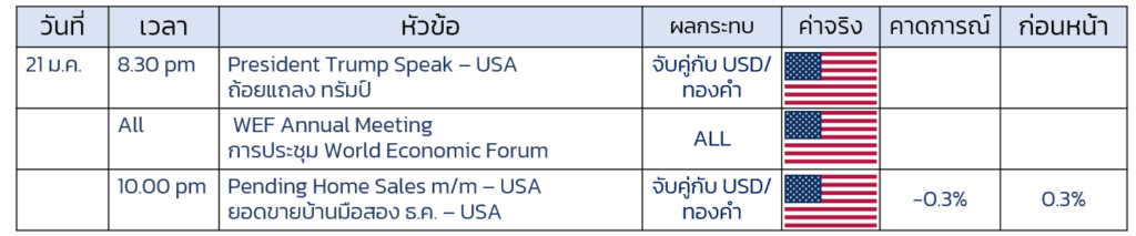- ติดตามถ้อยแถลง ของทรัมป์ เวลา 20.30 ในงานประชุม WEF ที่จะสร้างความผันผวนให้กับตลาด