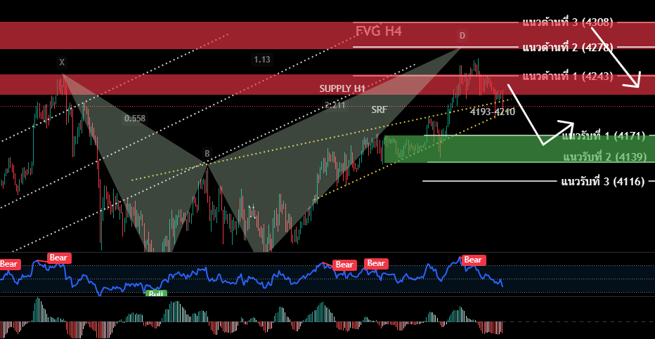 - เปิดสถานะซื้อ (รอสัญญาณซื้อ) กรอบ 4171- 4139 / SL 4440 เพื่อทำกำไร 4181/4191/4201/4210