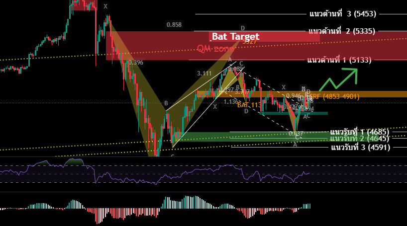 - หากราคาสามารถยืนเหนือ 4901 ได้ เปิดสถานะซื้อ (รอสัญญาณซื้อ) ที่กรอบ 4853-4901 / SL 4840 เพื่อทำกำไร 4949/4965/4680/5006/5023/5041/5063