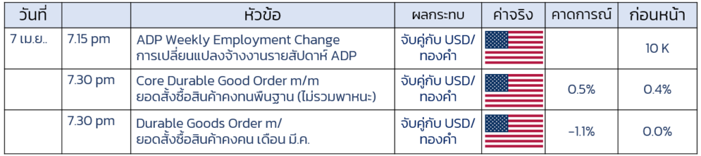 - ติดตามการจ้างงานรายสัปดาห์ ADP หากตัวเลข ออกมาน้อย-ติดลบ จะยิ่งกดดัน USD และเป็นบวกต่อ ทองคำ