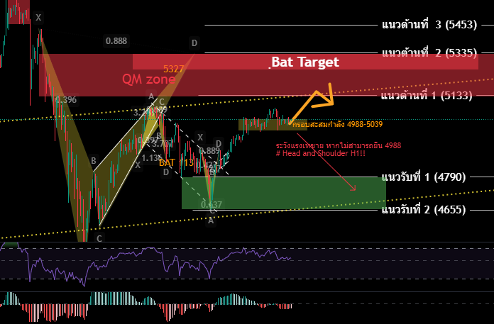 - เปิดสถานะซื้อ (รอสัญญาณซื้อ) 4988-5039 / SL 4980 เพื่อทำกำไร 5060/5070/5080/5090/5105/5125