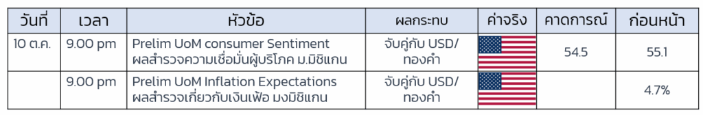 - ติดตามตัวเลข ผลสำรวจความเชื่อมั่นผู้บริโภค ม.มิขิแกน หากออกมามากกว่า เดือนที่แล้วจะมีปัจจัยบวกต่อ USD และ ราคาทองคำ แต่หากตัวเลขออกมาน้อยกวาเดือนที่แล้ว กดดันทองคำ