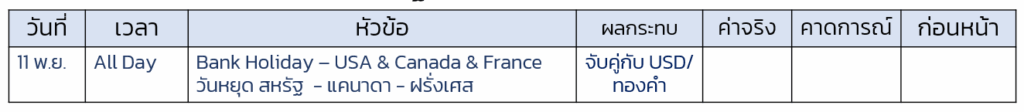 - 7 พ.ย. Government Shutdown เดินหน้าสูวันที่ 40 ส่งผลให้ ไม่สามารถ เผยแพร่ตัวเลขการจ้างงานนอกภาคการเกษตร(Non- Farm payrolls จาก BLS ) ได้ มา 2 เดือน