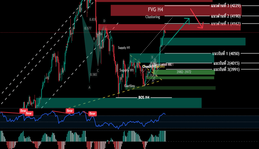 H4/H1 ราคาทองคำ ดีดพุ่งตัว เข้าสู่่แนวต้าน H4 กรอบ 4136-4161 หากไม่สามารถผ่านได้ให้ใช้กลยุทธืในการย่อยซื้อ ณ ปัจจุบันเริ่มปรากฎสัญญาณ Overbought