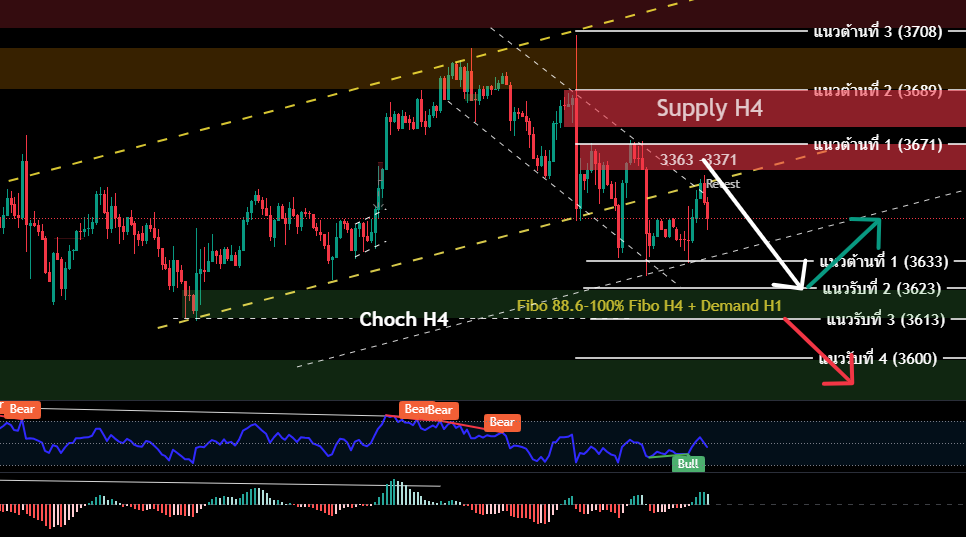 - เปิดสถานะขาย (รอสัยญาณขาย + H1 ปิดต่ำกว่า 3613) ที่กรอบ 3623-3613 / SL 3628 เพื่อทำกำไร 3610/3605/3600/3595/3690
