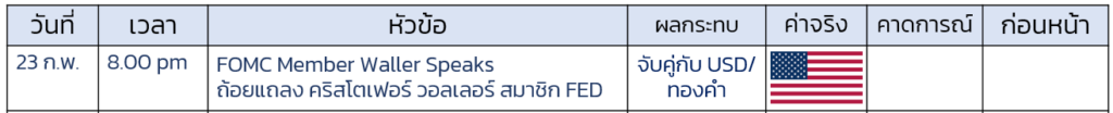 ปฎิทินเศรษฐกิจ 23 ก.พ.2569