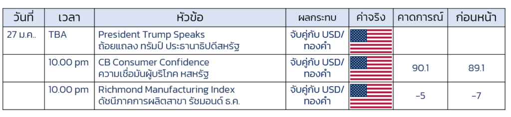 ปฎิทินเศรษฐกิจ 27 ม.ค. 2569