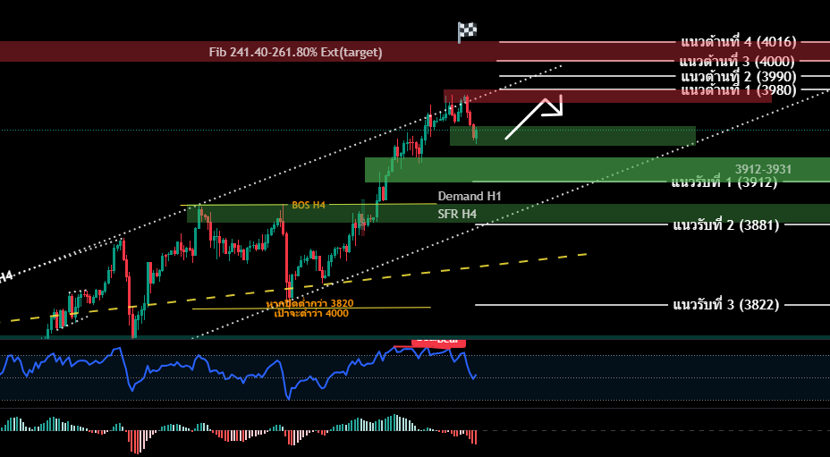 - เปิดสถานขาย (รอสัญญาณขาย) ที่กรอบ 3970-3981/SL 3990 เพื่อทำกำไรที่ 3965/3960/3955/3950/3945/3940/3935