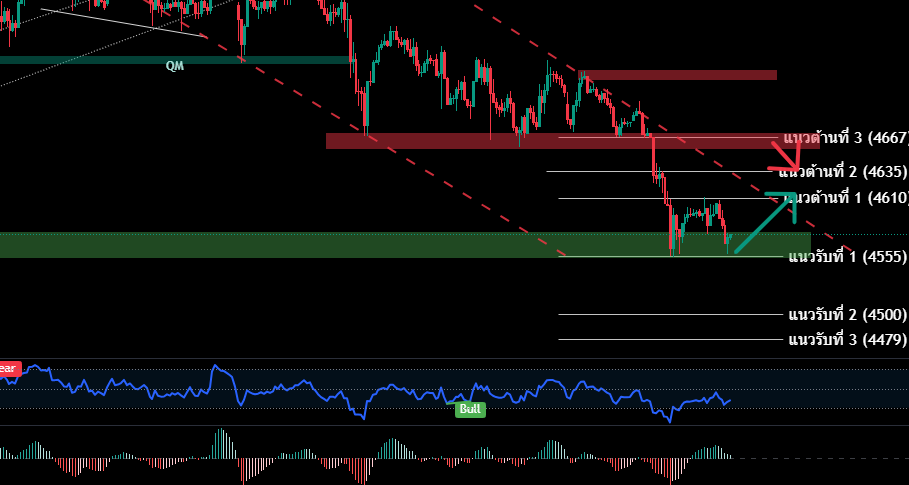 - เปิดสถานะซื้อ (รอสัญญาณซื้อ) ที่กรอบ 4554-4576 / SL 4545 เพื่อทำกำไร 4579/4586/4591/4599/4602/4610