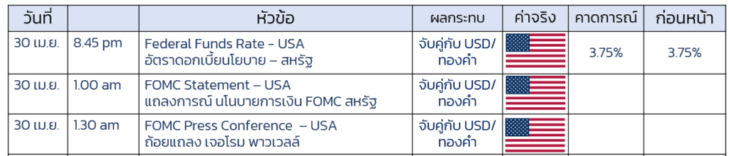 ปฎิทินเศรษฐกิจ 30 เม.ย.2569