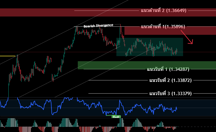 - เปิดสถานะขาย (รอสัญญาณขาย) กรอบ 1.35887-1.35590 / SL 1.36000 ทำกำไรที่ 1.35000/1.34967/1.34850/1.34718/1.34575/1.34525