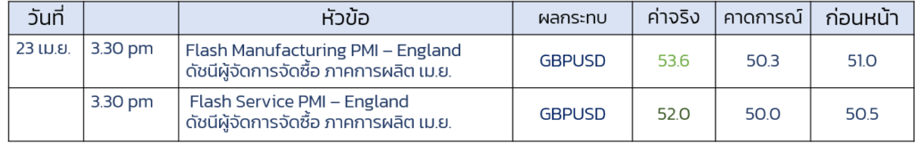 - ประกาศตัวเลขดัชนีผู้จัดการจัดซื้อ ทัง้ภาคผลิต และบริการ – ฝั่งอังกฤษ ออกมาดีเกินคาด ปัจจัยบวกต่อ GBP